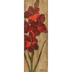 Vivid Red Gladiola on Gold